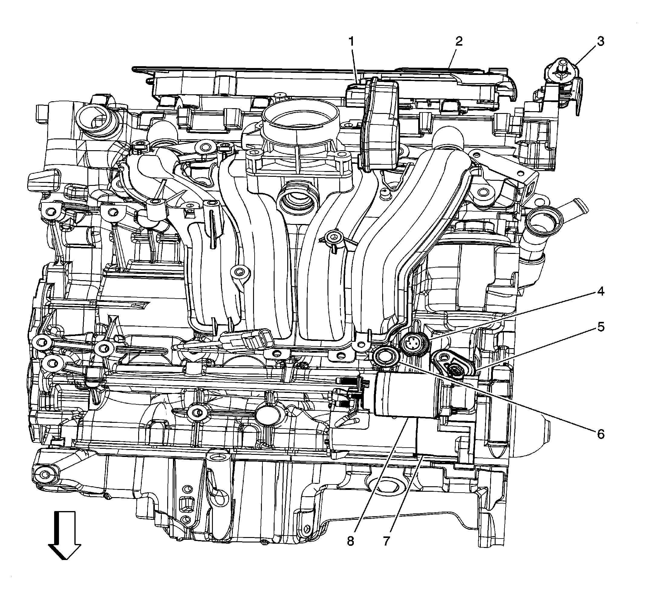 | Ignition Control Module (ICM) (2) | Top of engine. See Figure. |