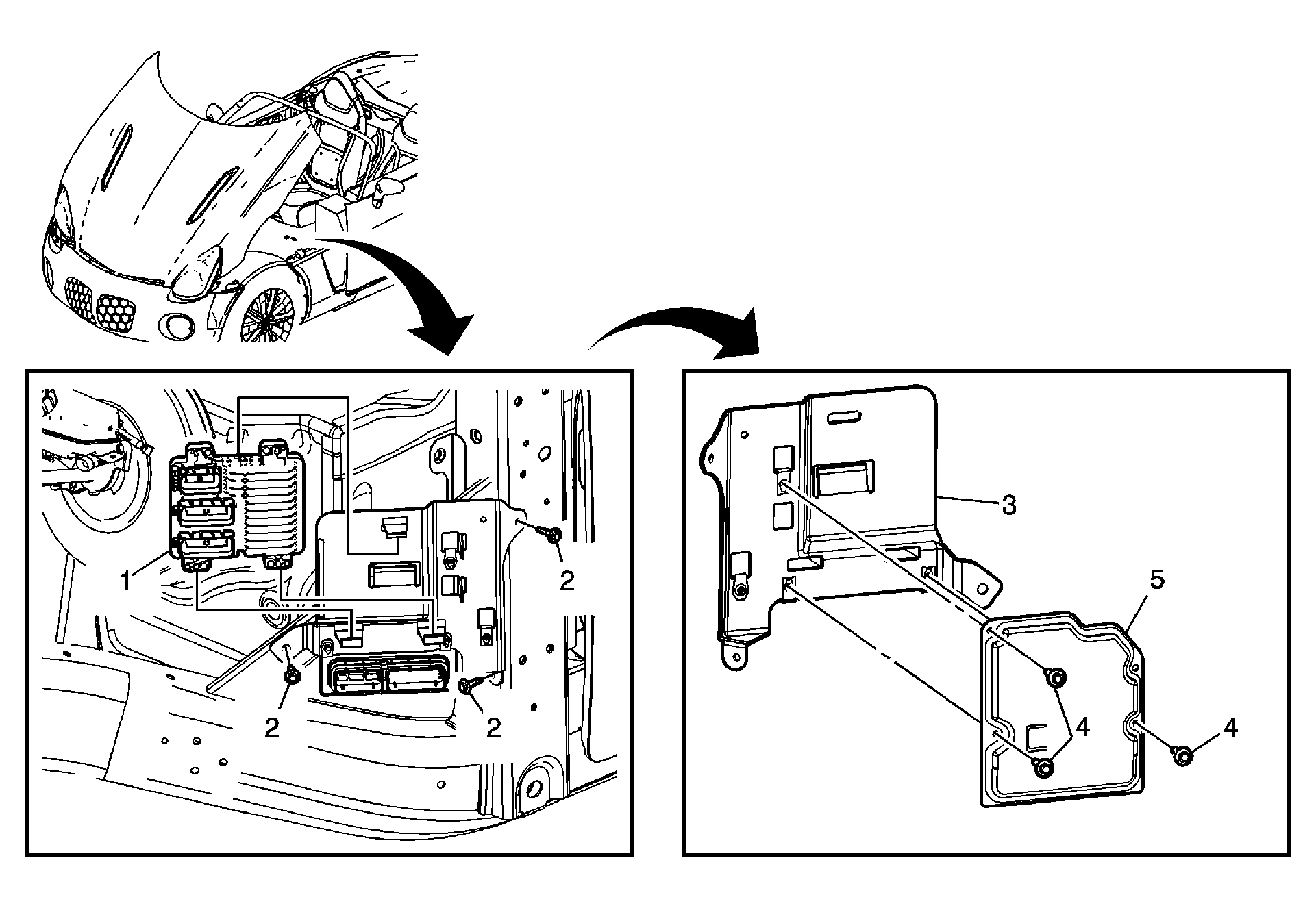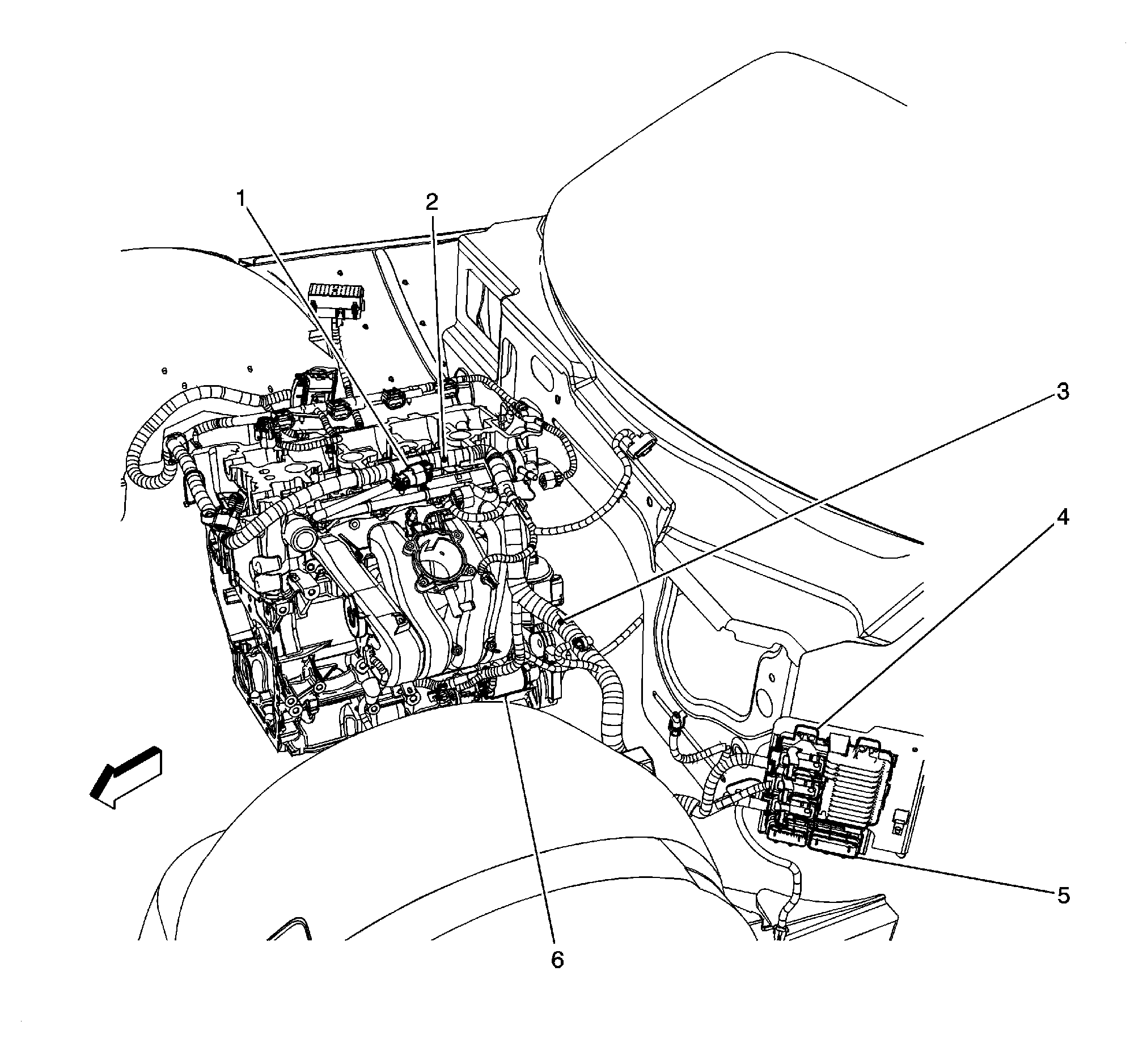 | Electronic Control Module (ECM) (4) | Left side of engine compartment. See Figure. |