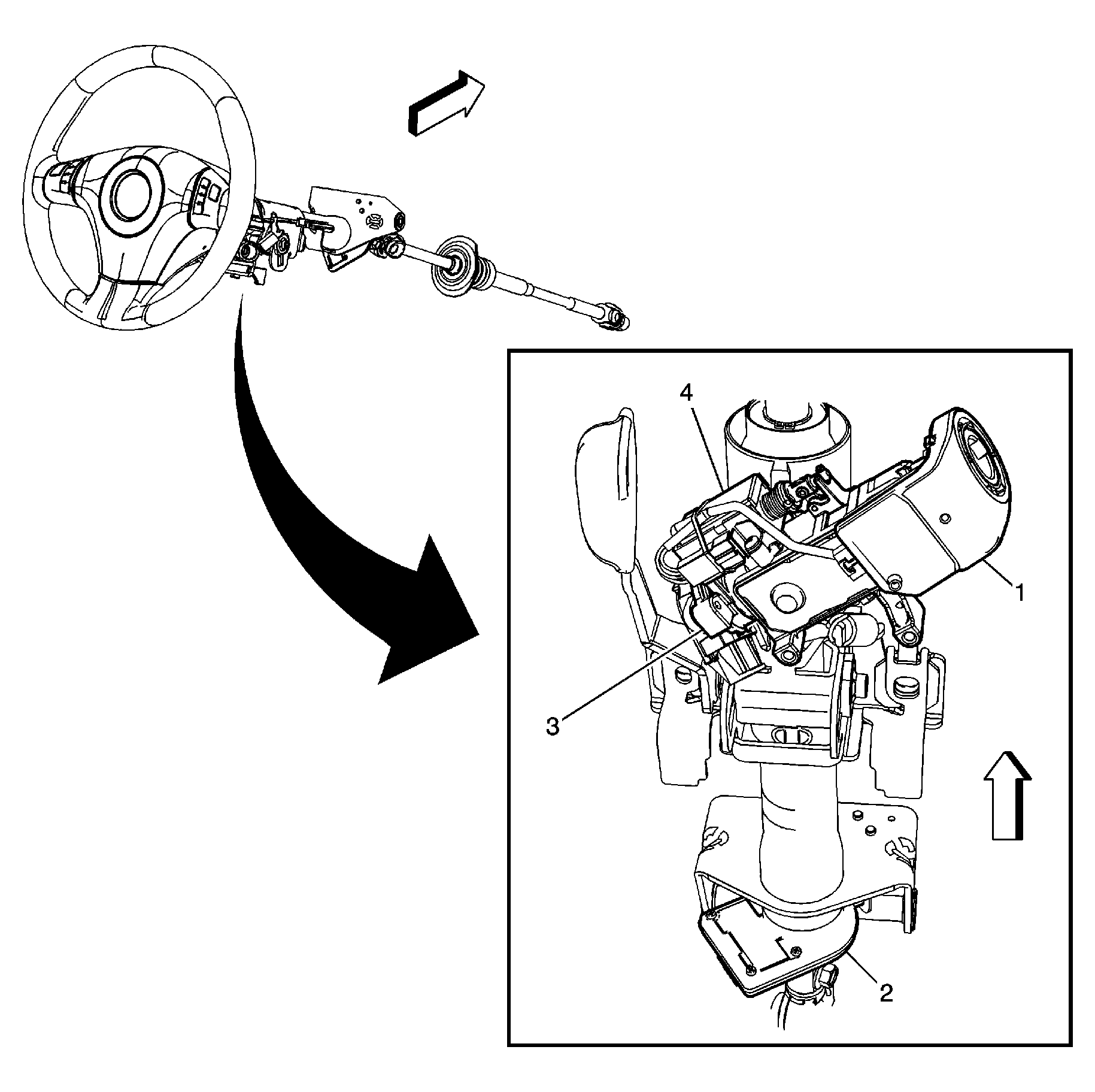 | Theft Deterrent Module (1) | Top right side of steering column. See Figure. |