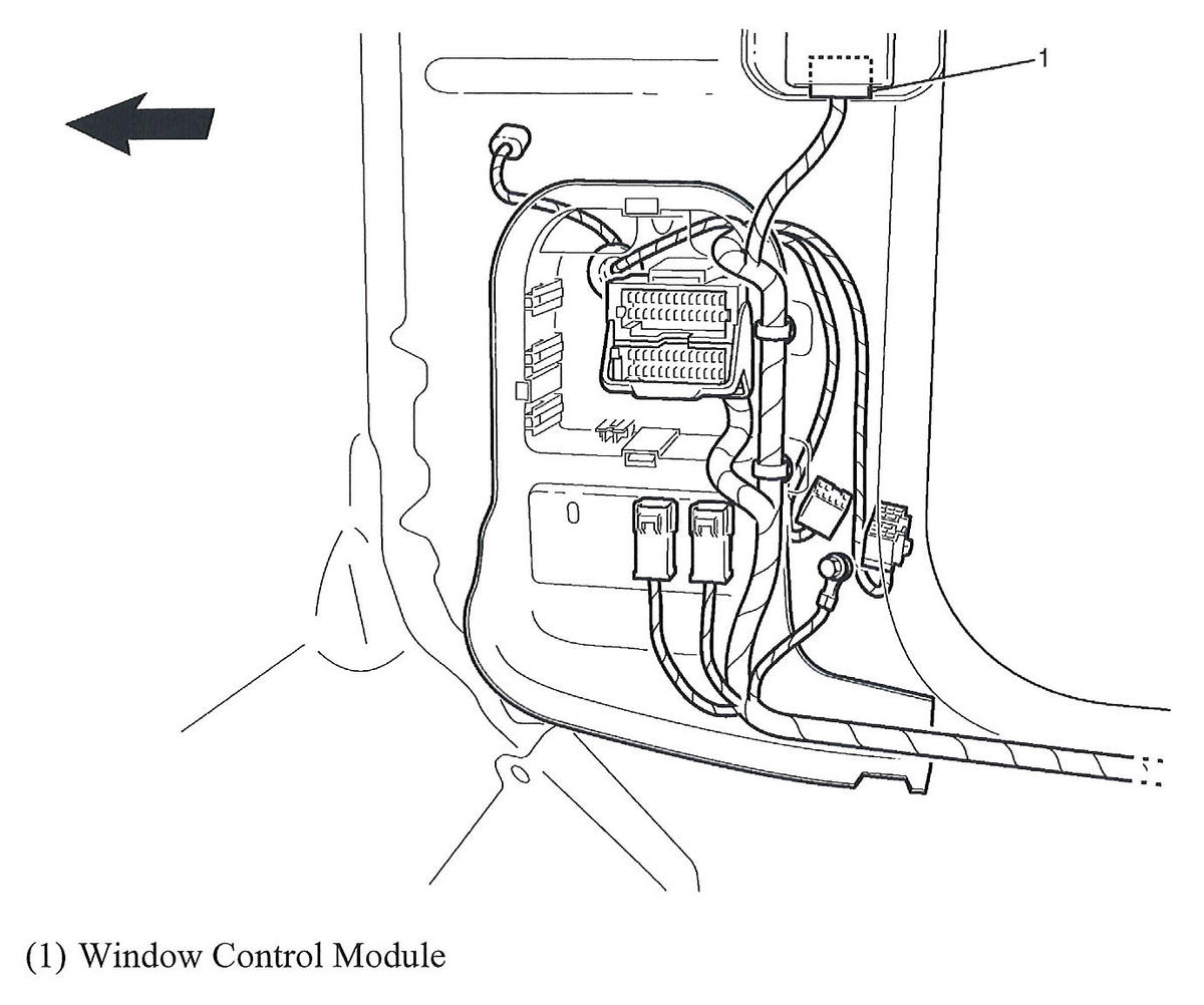 | Express Down Window Module (2) | Behind right kick panel. See Figure. |