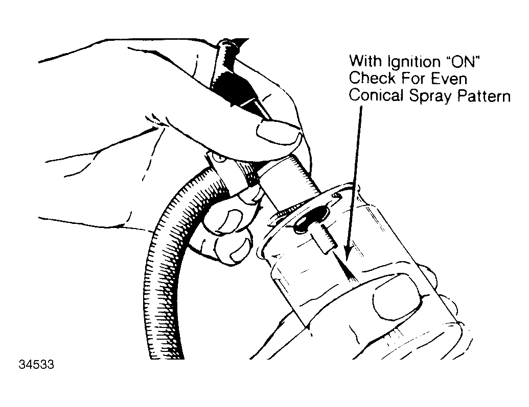 - Operate fuel pump. Turn switch to "ON" position. Cold start injector should spray. Turn switch "OFF", but leave fuel pump running. Injector should not spray. Wipe off nozzle and check for leakage. With pump running, no drops should form within one minute.