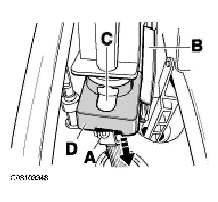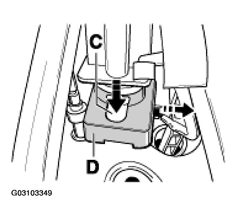 - Pull off steering angle sensor plug. The plug is pulled off to the side (-direction arrow- in Fig 3 ) or to the front (depending on the steering angle sensor version). Disengage steering angle sensor -C- forwards. To do this, press the sensor carefully (-direction arrow- in Fig 3 ) through the opening in the cover -D- .