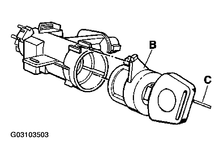 2. Press on the pawl of the lock barrel (locking pawl). Press the pawl, insert the ignition key and turn the key as far as it will go to (ignition on). In this position, insert the steel wire (C) that was used for removal. See Fig 1 .