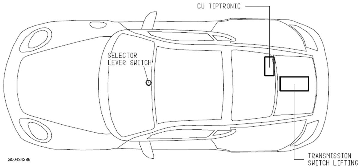 CU Tiptronic Right rear of engine compartment. See Figure.