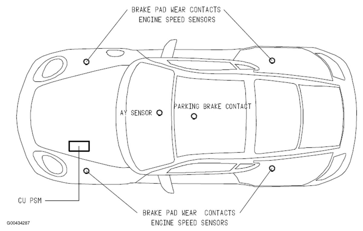 CU PSM (Porsche Stability Management Control Unit) Left side of front luggage compartment. See Figure.