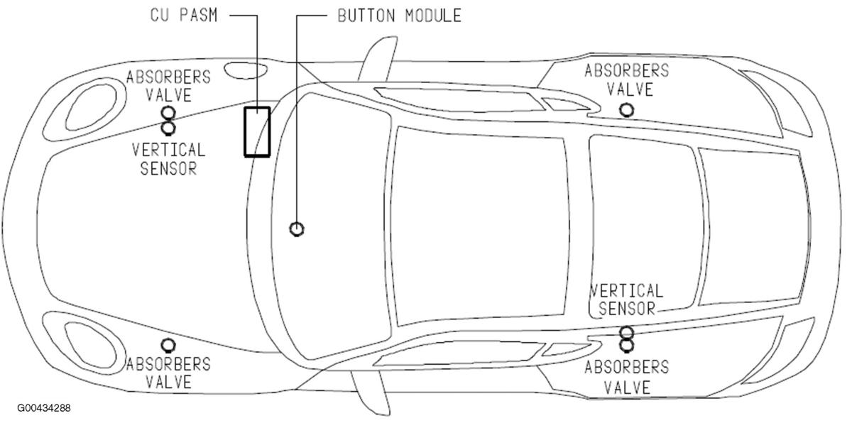 CU PASM (Damptronic Control Unit) At right kick panel. See Figure.