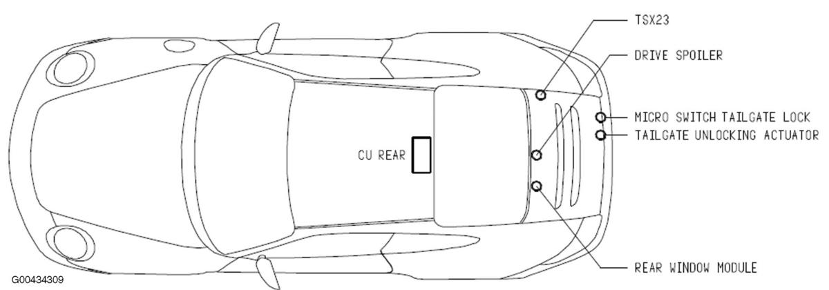 | Rear Window Module | On rear window wiper motor. See Figure. |
