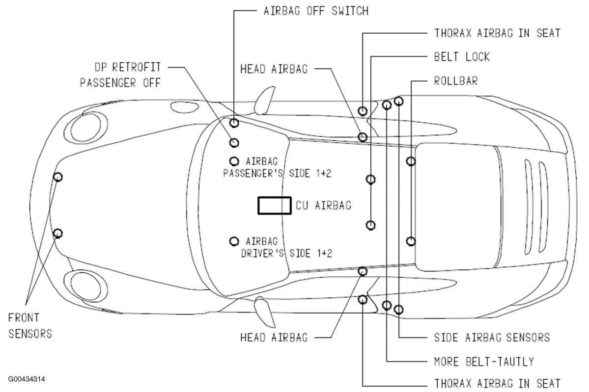 | CU Airbag | Below center console. See Figure. |