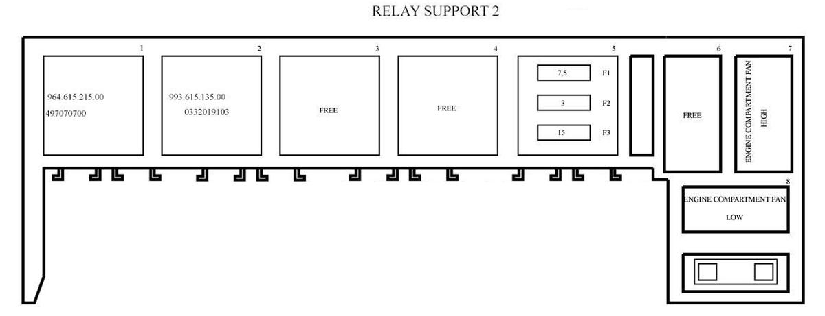 Fuses Support F Left rear of engine compartment. See Figure.