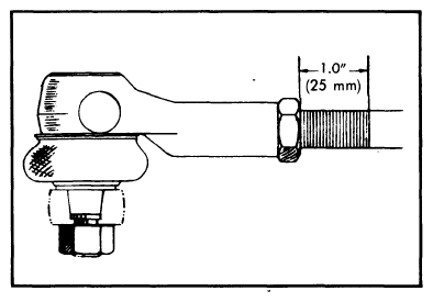 After adjustment of toe-in, measurement "A" (Fig 1) of tie rod must not exceed 1.0" (25 mm) or 1.02" (26 mm) for power steering models. For tie rods opposite each other, the difference between measurements "A" must not exceed 0.08" (2 mm).