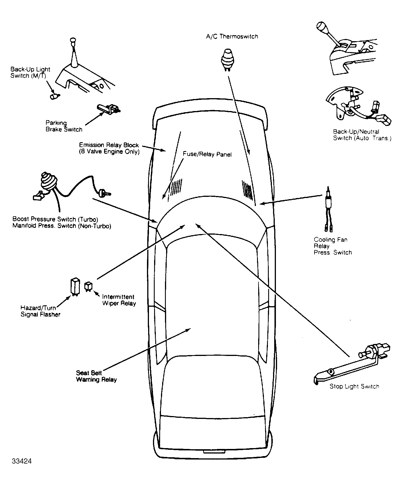| Emission Relay Block (8 Valve Engines) | On front of left fender in engine compartment. See Figure & Figure . |