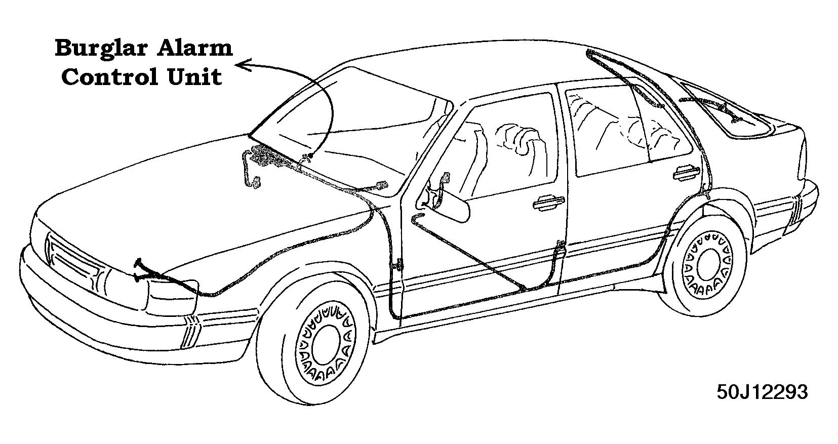 | Burglar Alarm Control Unit | At electrical distribution box behind glove compartment. See Figure . |