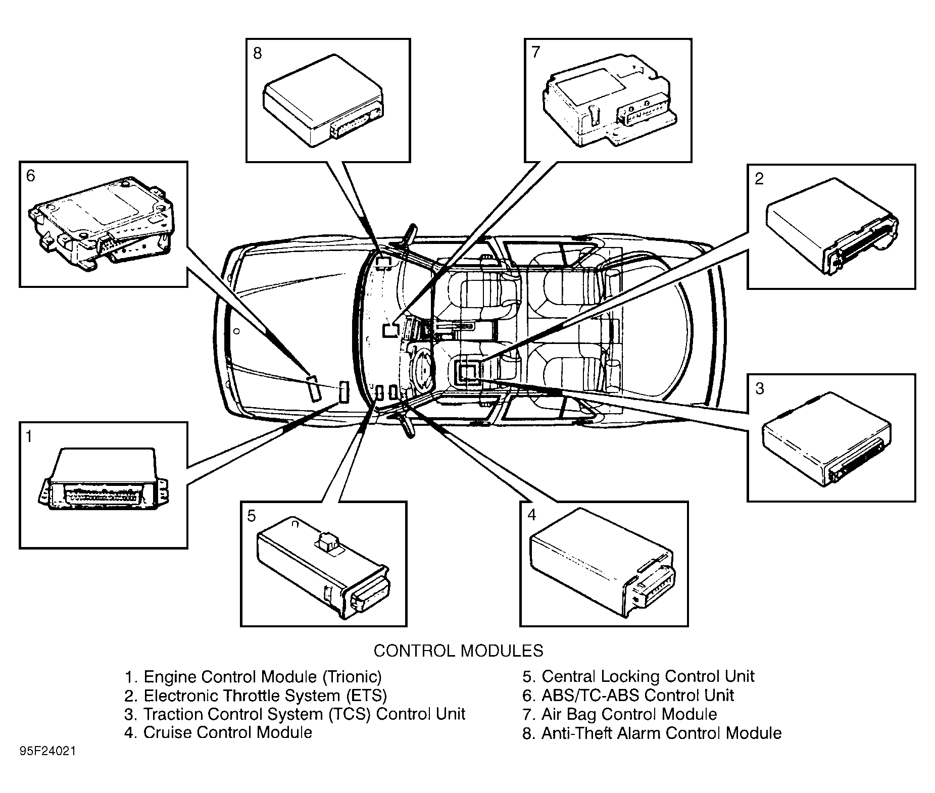 | Engine Control Module (Trionic) | On left side of firewall. See Figure . |