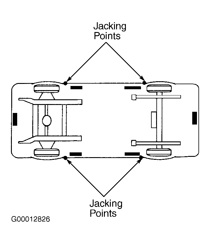 The points on outline of body (indicated by dots) designate lifting points for manufacturer-supplied jack. See Fig 1 .