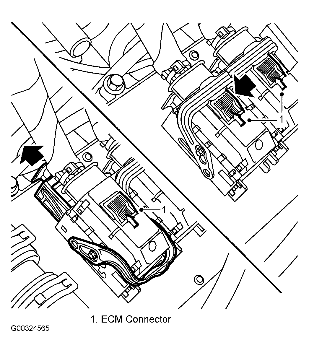 - Lower the car to the floor. Remove the upper engine cover. Unplug the connectors from the engine control module. Remove the engine control module. See Fig 2 .