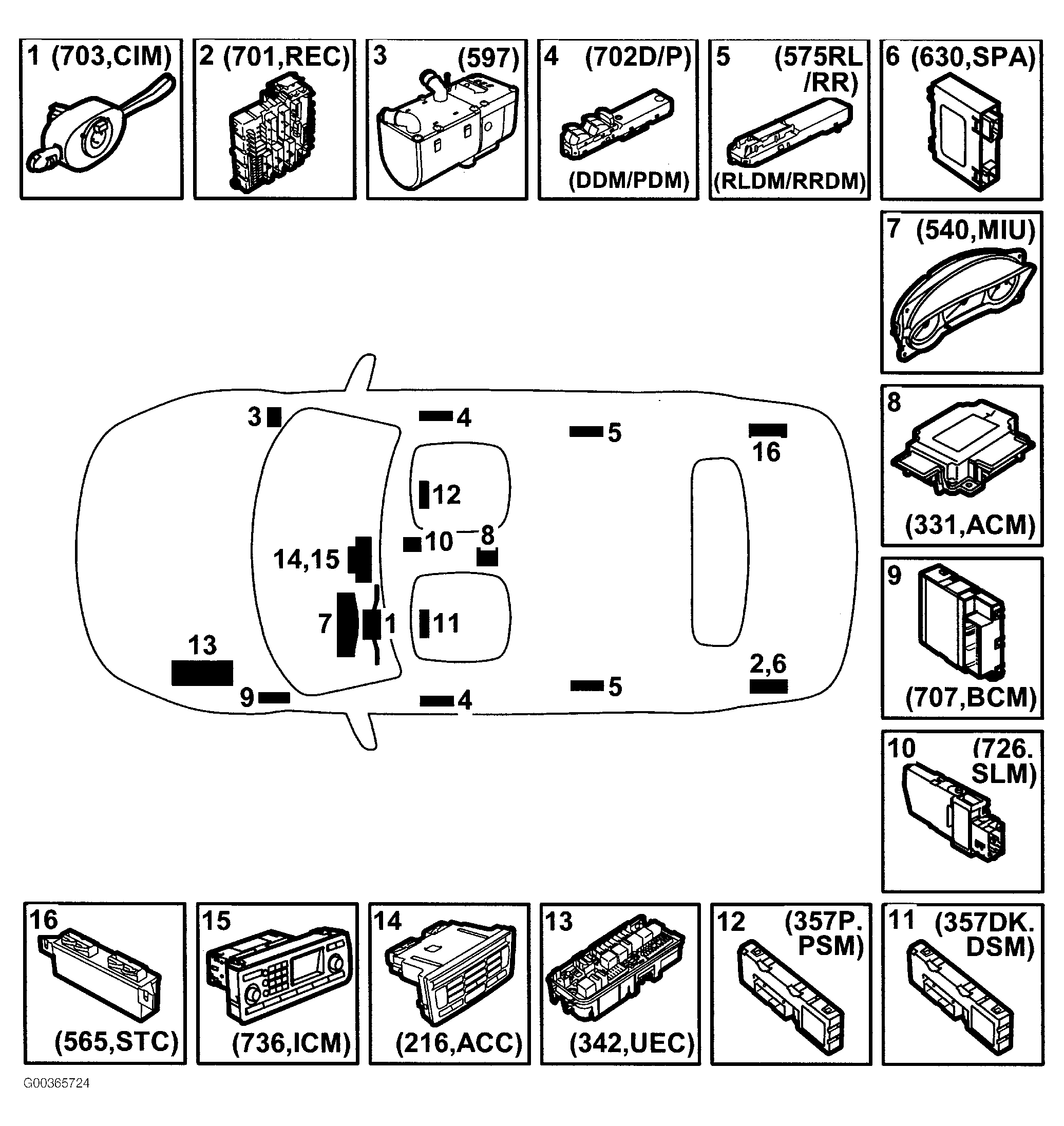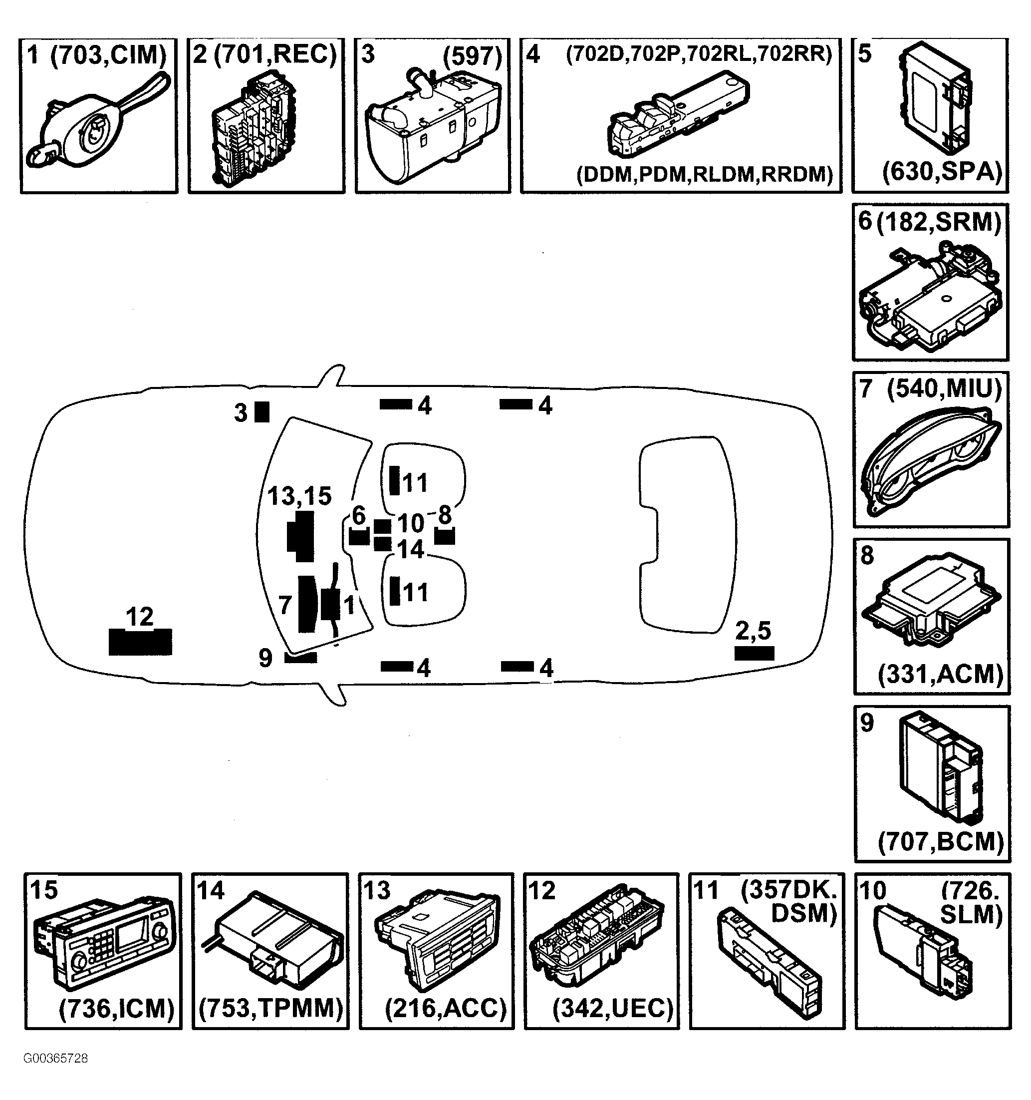 | DSM (Driver Seat Module) (Sedan) (11) | In driver's seat. See Figure . |