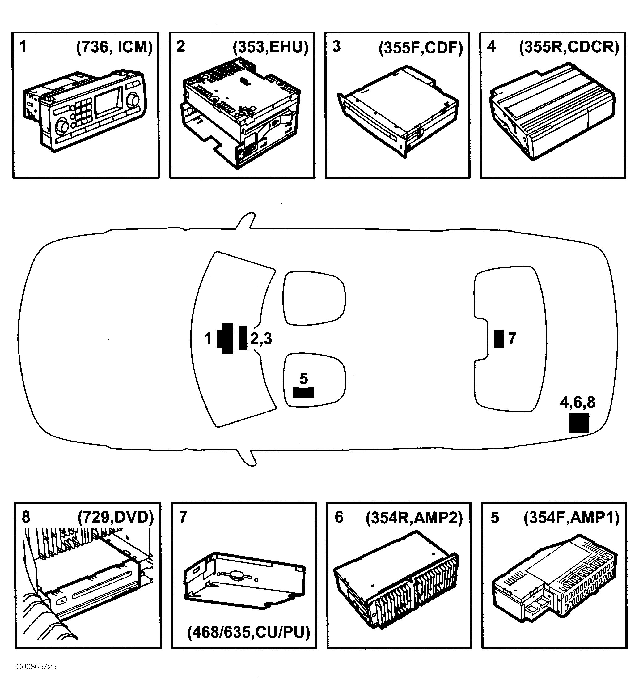 | CDCR (Rear CD Changer) (4) | Left rear corner of luggage compartment. See Figure . |