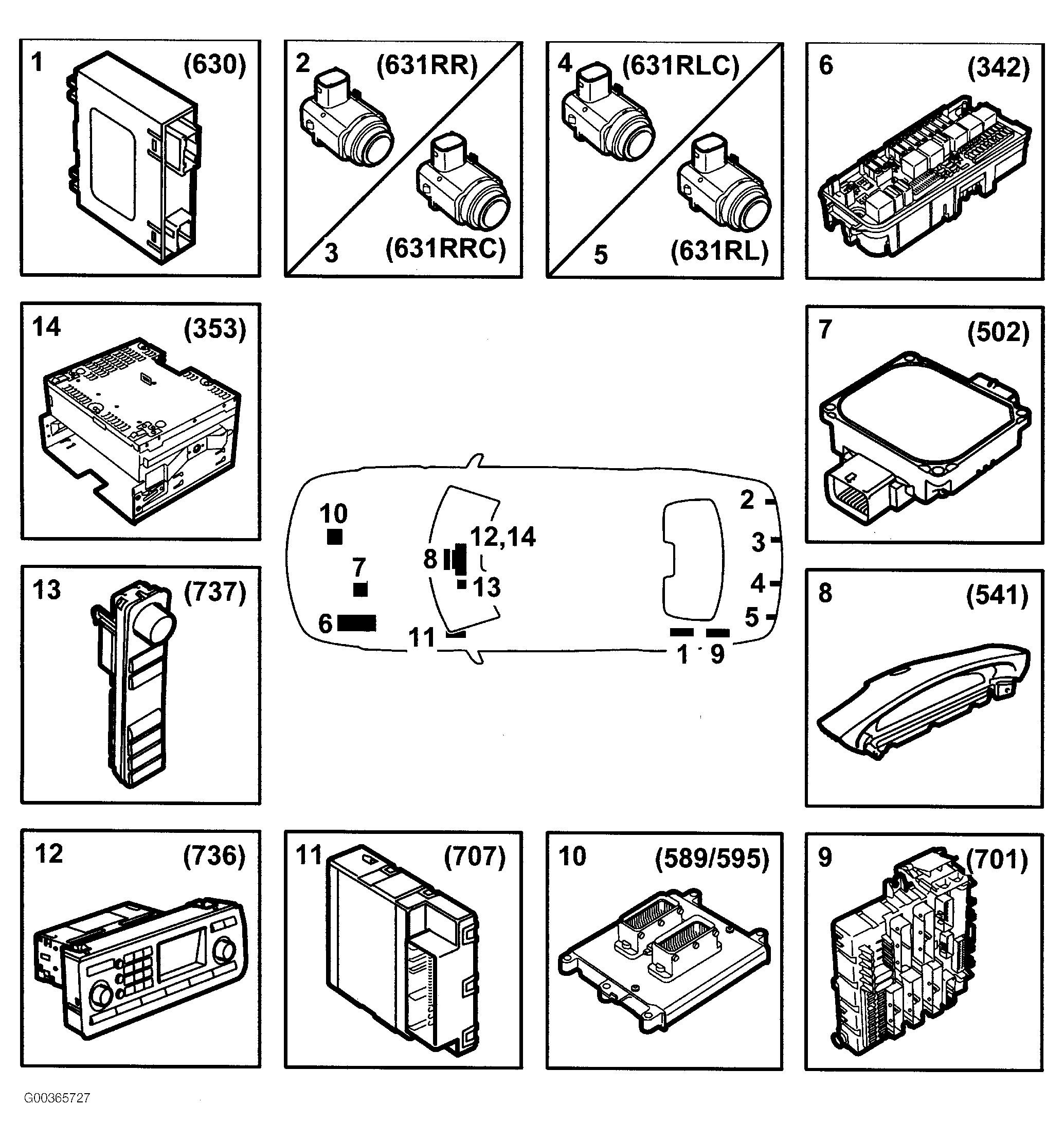 | CU/PU (Telematics Unit) (7) | Below parcel shelf. See Figure . |