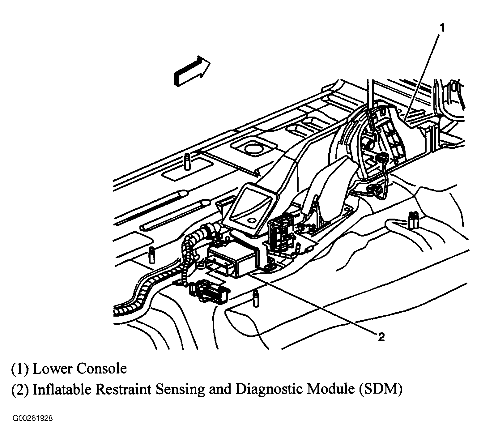 | Inflatable Restraint Sensing & Diagnostic Module (SDM) | Below rear of center console. See Figure . |