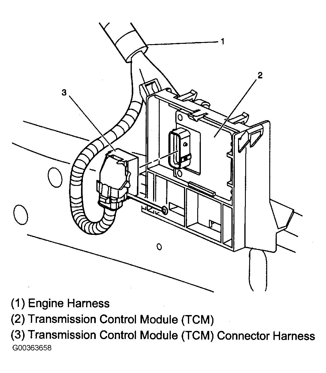 | Transmission Control Module (TCM) | Near lower left front of engine. See Figure . |