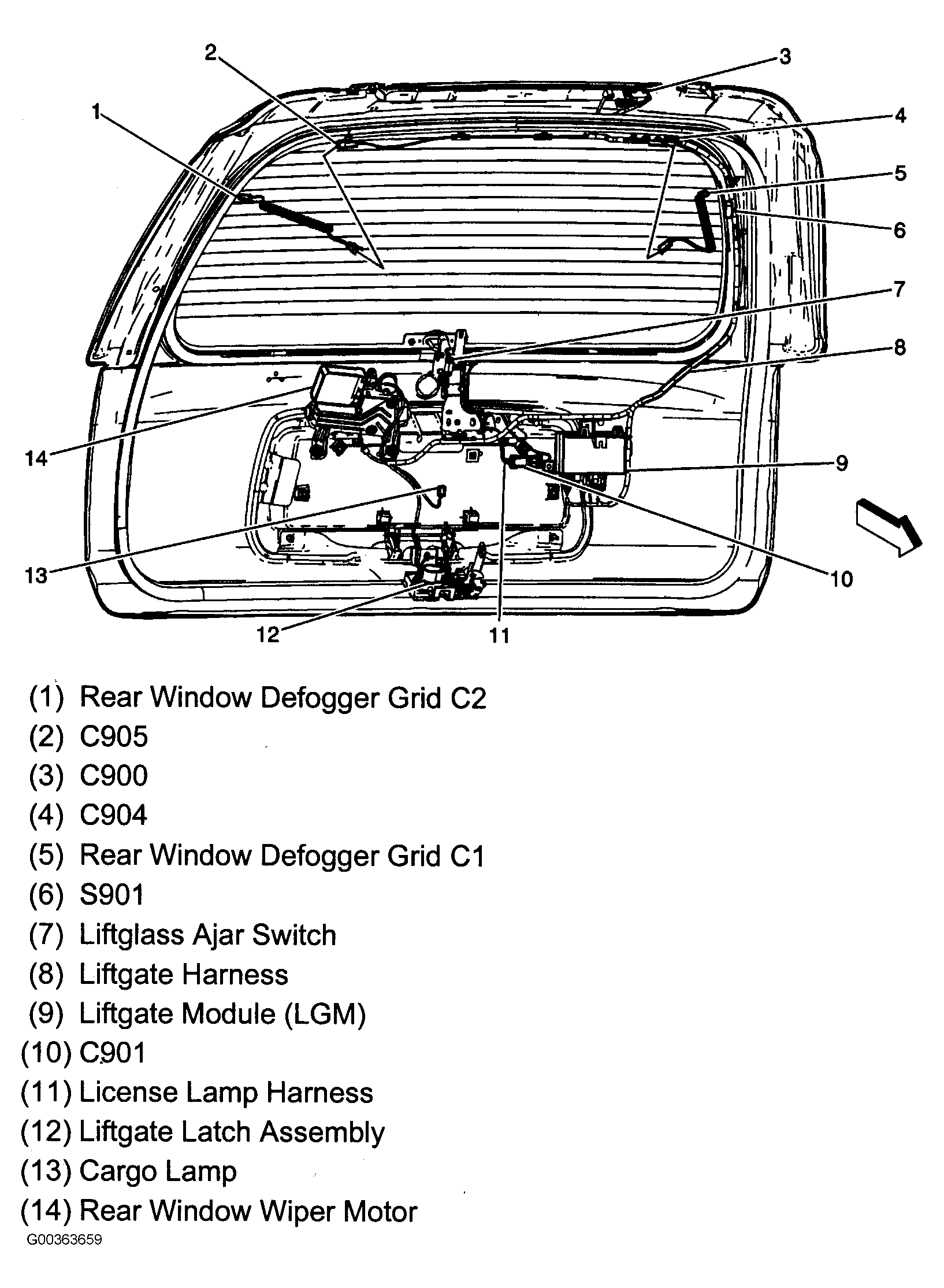 | Rear Window Wiper Module | Mounted on center lower liftgate back glass. |