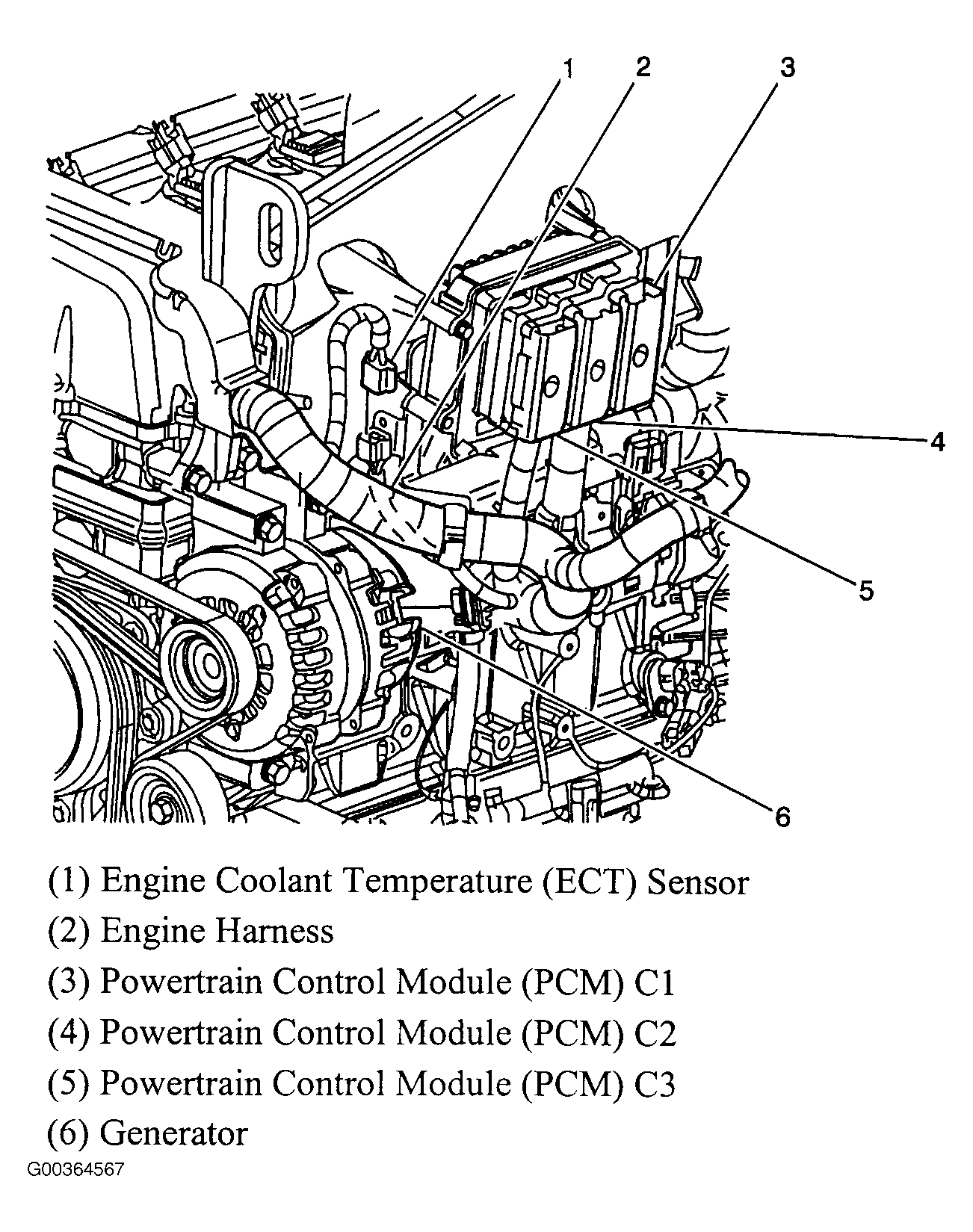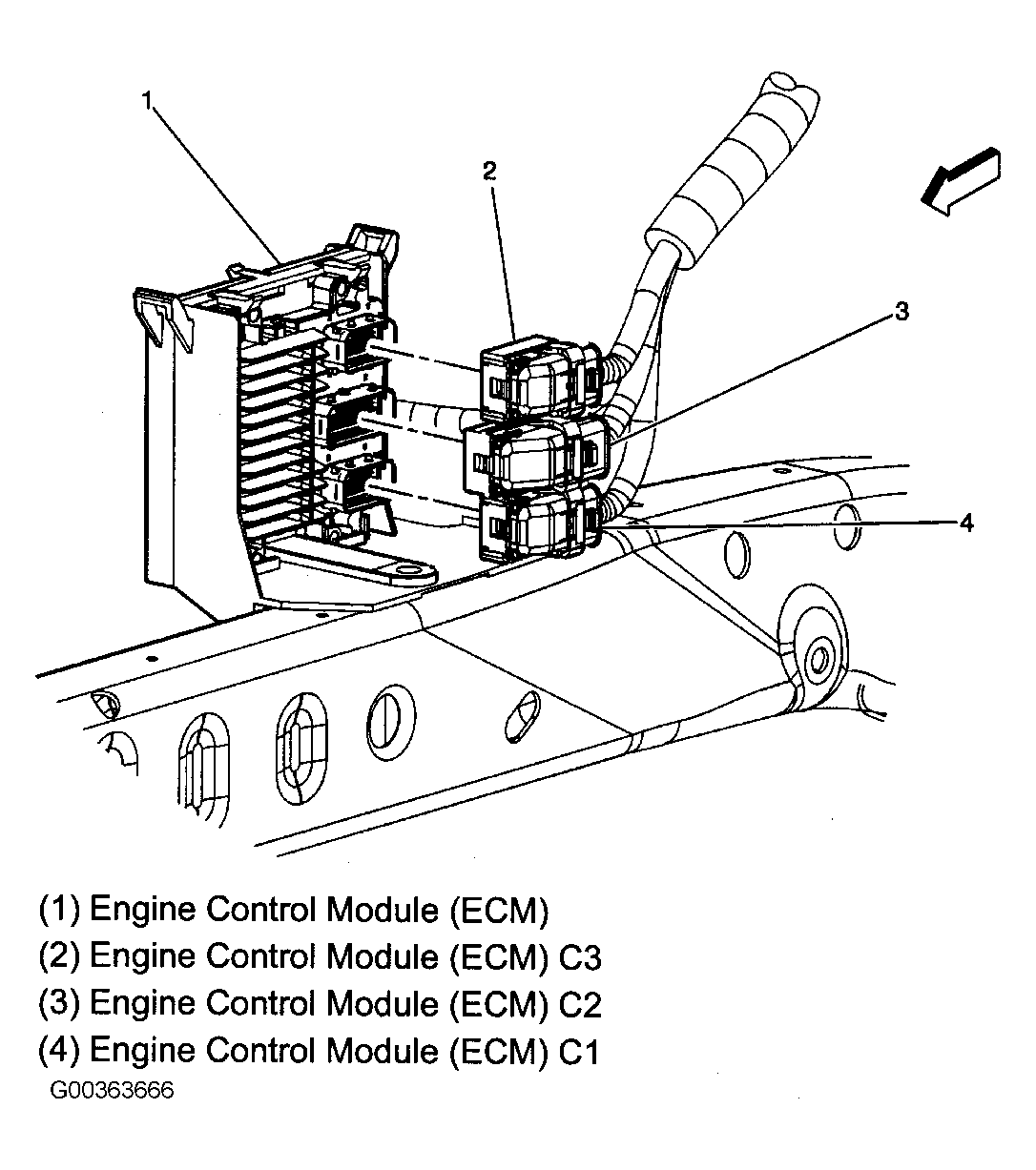 | Engine Control Module (ECM) (5.3 L) | Near lower left front of engine. See Figure . |