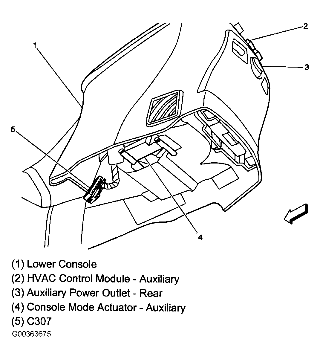 | HVAC Control Module-Auxiliary | Under lower console. See Figure . |
