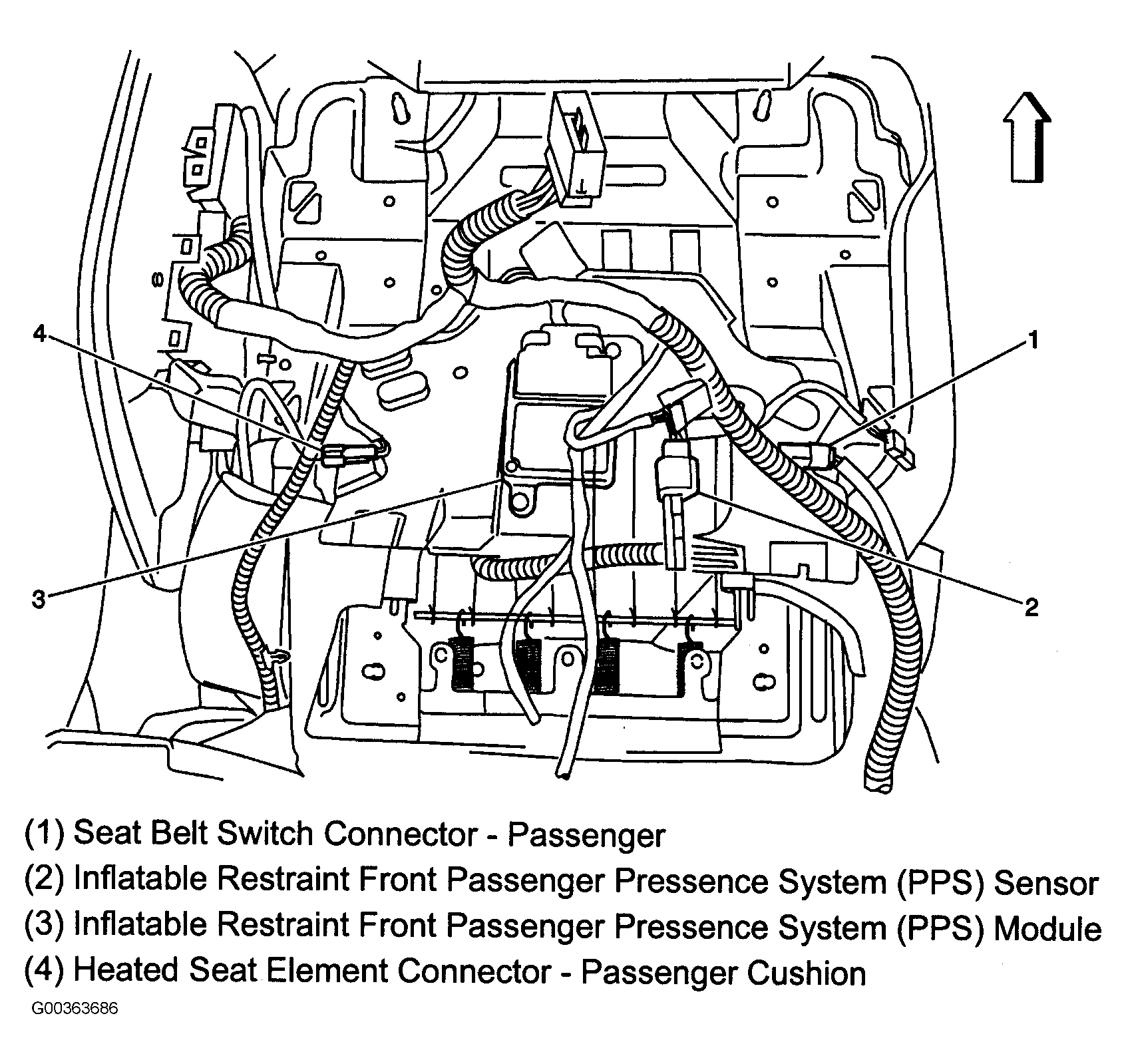 | Inflatable Restraint Front Passenger Presence System (PPS) Module | Under passenger's seat. See Figure . |