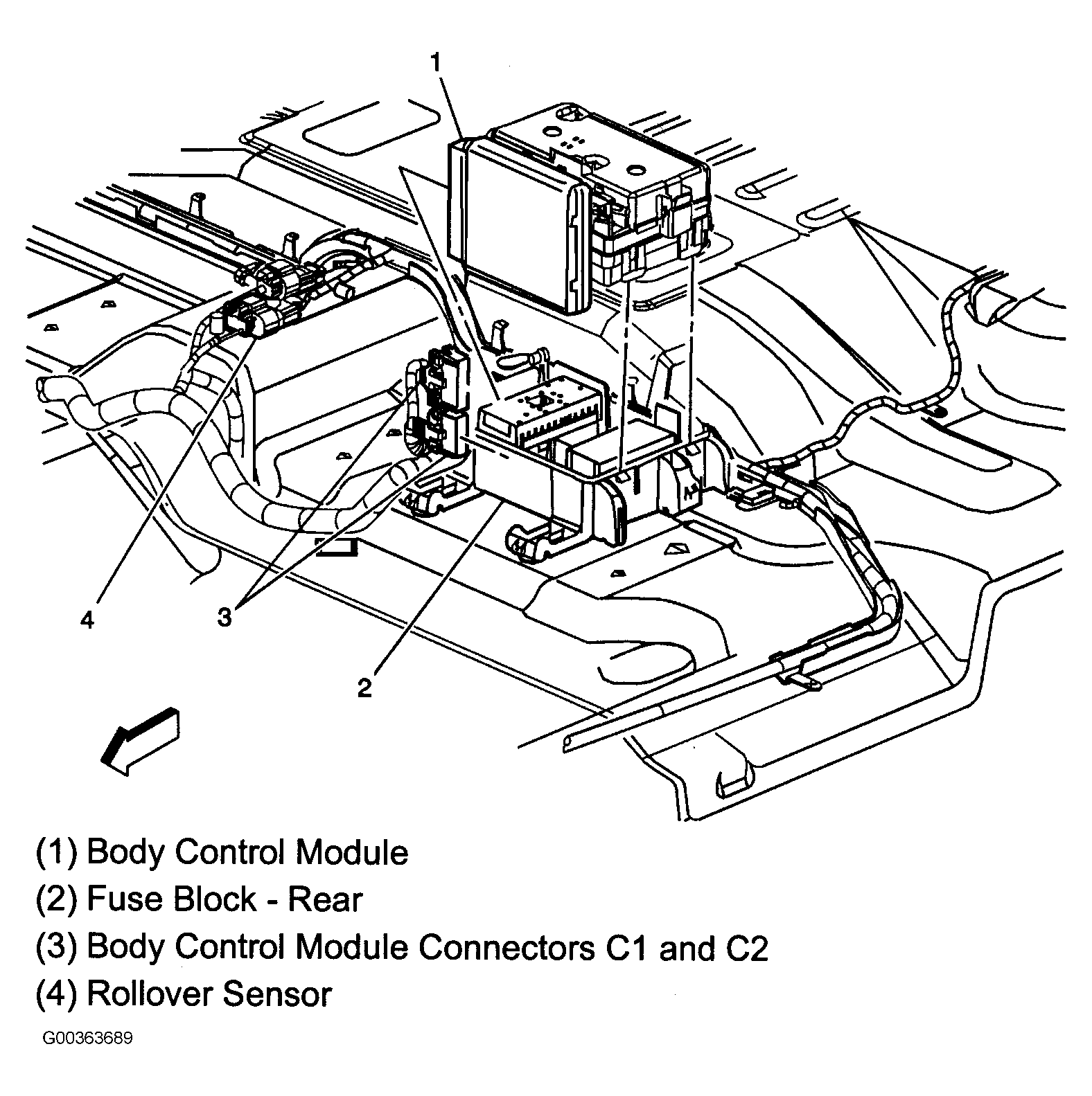 | Body Control Module | Beneath left rear seat, on rear fuse block. See Figure . |