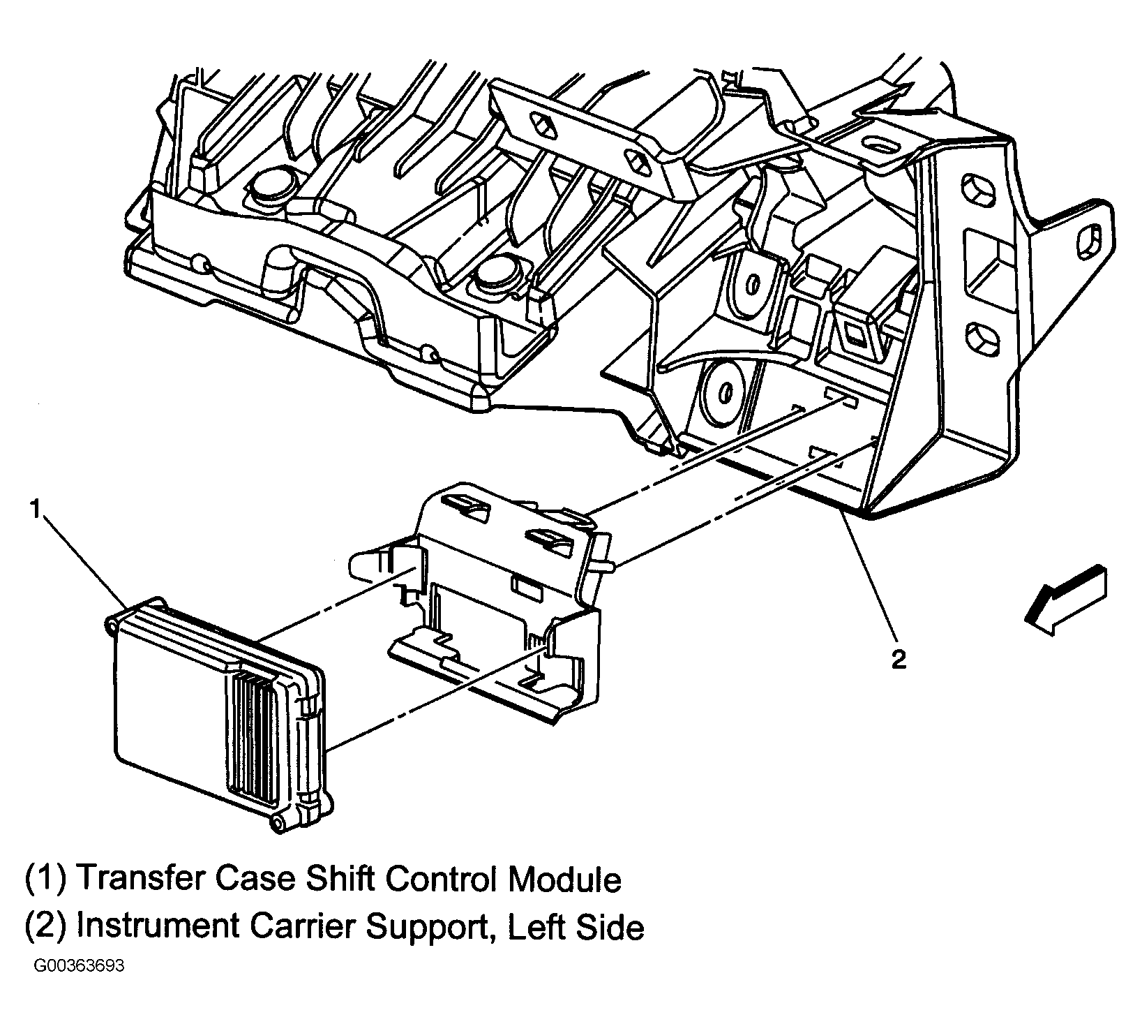 | Transfer Case Shift Control Module | Behind lower left side of dash. See Figure . |