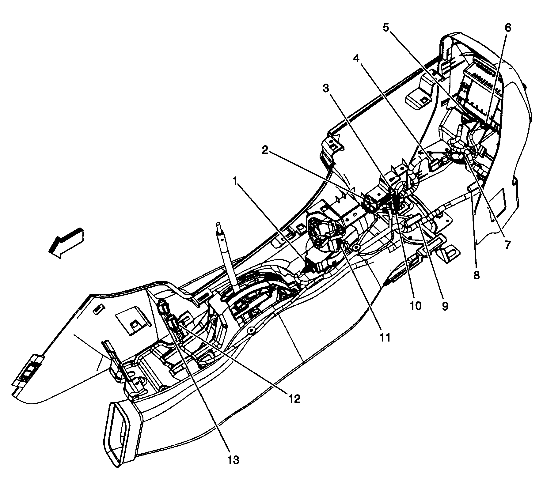 | Inflatable Restraint Sensing & Diagnostic Module (SDM) | Below rear of center console. See Figure. |