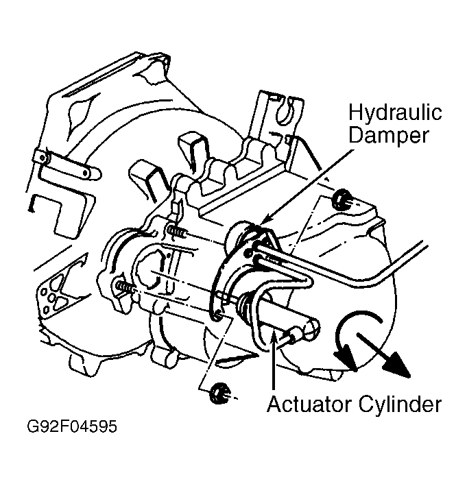 Clutch master and actuator cylinders (and lines between these components) are serviced as an assembly. System is sealed and does not require bleeding. Bleed screw on actuator cylinder is used for factory fluid fill only.