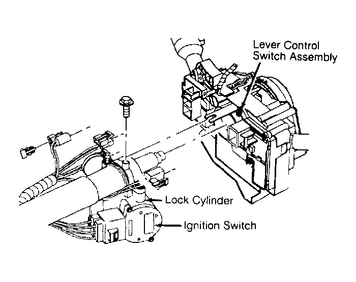 Lever control switch assembly (combination switch) is mounted to top end of steering column. See Fig 1. Ignition switch is attached to rear of lock cylinder. See Figure and Figure. All vehicles have driver-side Supplemental Inflatable Restraint (SIR) system (air bag). SIR coil assembly is mounted to top of lever control switch assembly, under steering wheel. See Fig 1.
