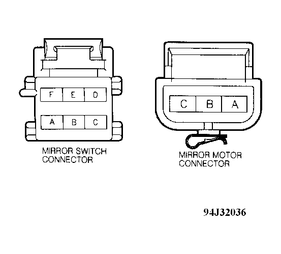 Remove power mirror switch. See POWER MIRROR SWITCH under REMOVAL & INSTALLATION. Disconnect power mirror switch. Using an ohmmeter, check for resistance between appropriate power mirror switch terminals. See Figure . See POWER MIRROR SWITCH RESISTANCE TEST table. If switch fails any test, replace switch.