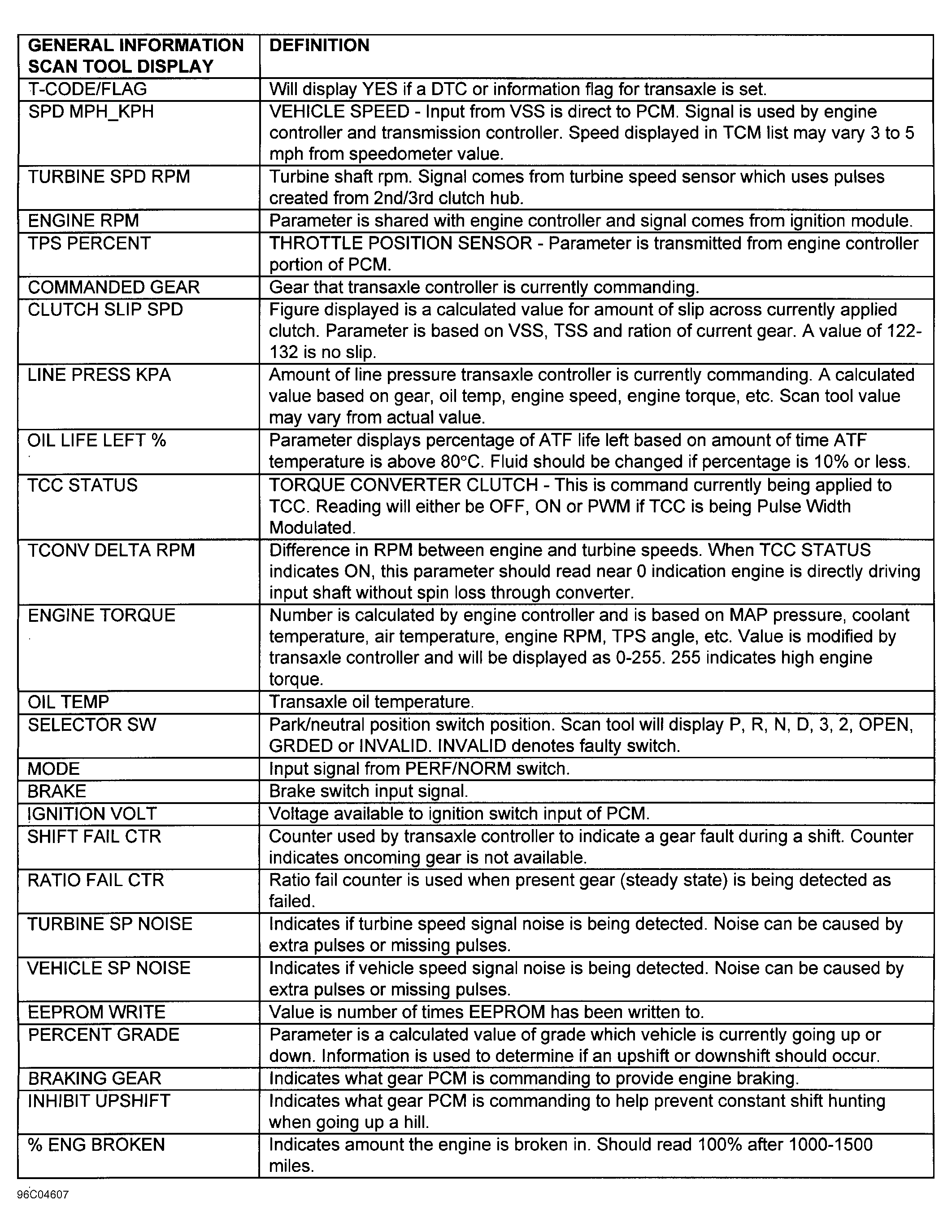 Fig 1: Scan Tool Displayed General Transaxle Information