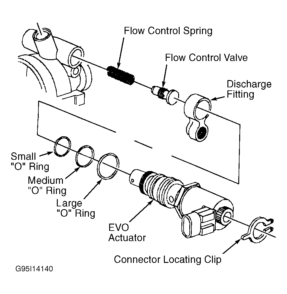 9. Turn ignition off. Connect Tech 1 scan tool. Select EVO SUBSYSTEM from SPECIAL TEST menu. Open valve on tester. Start engine. Using Tech 1 scan tool, command Electronic Variable Orifice (EVO) actuator to provide FULL ASSIST. If flow rate is not 2.35-2.85 gallons (8.9-10.8L) per minute, replace EVO actuator on pump.