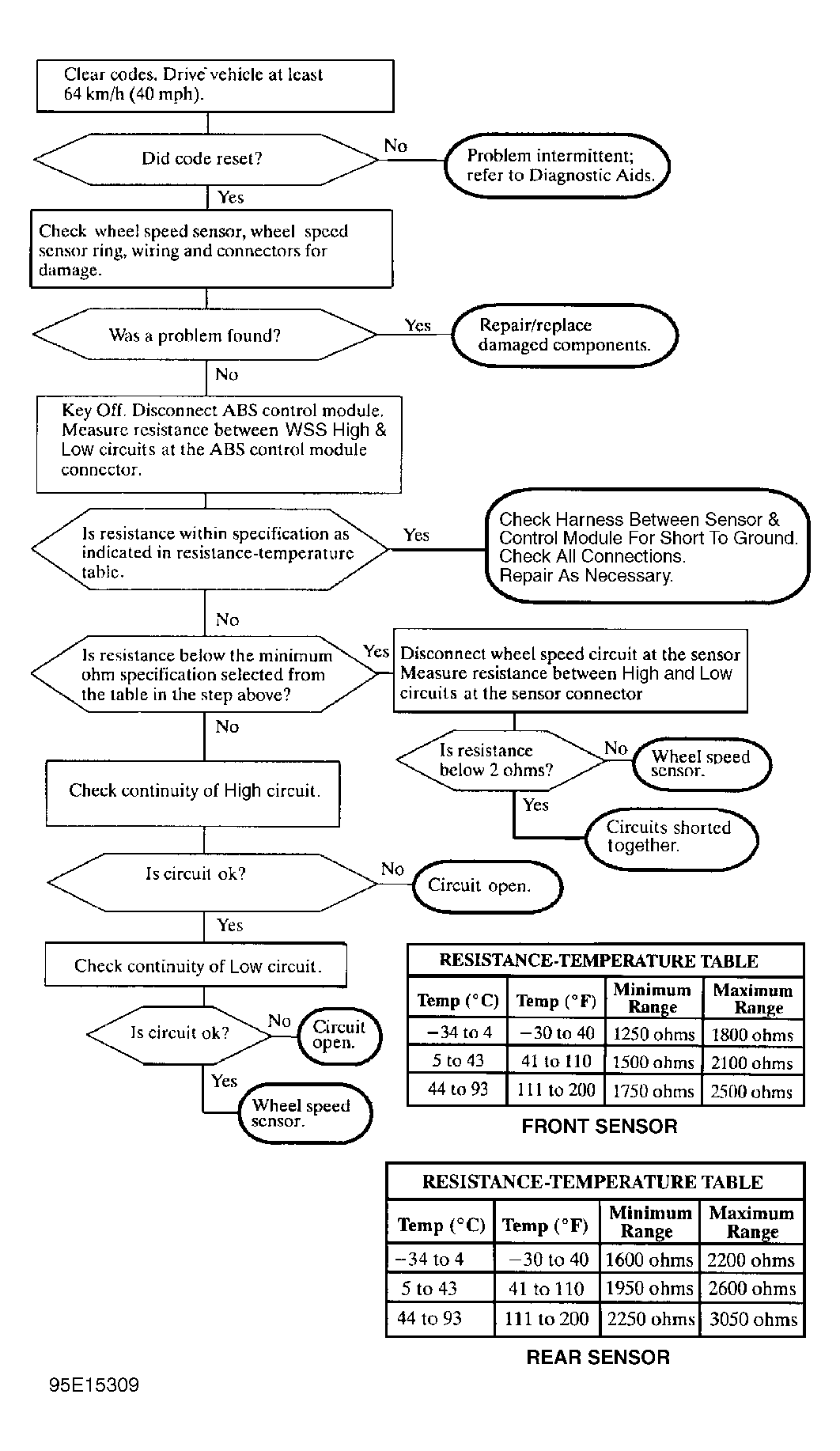 Code will set if wheel speed signal changes by greater than 10 MPH in 8 milliseconds. This code can be set any time vehicle is moving and not in ABS braking. Code 25/26/27/28 may be set together with Code 21/22/23/24. Drive vehicle faster than 40 MPH to check for reappearance of failure.