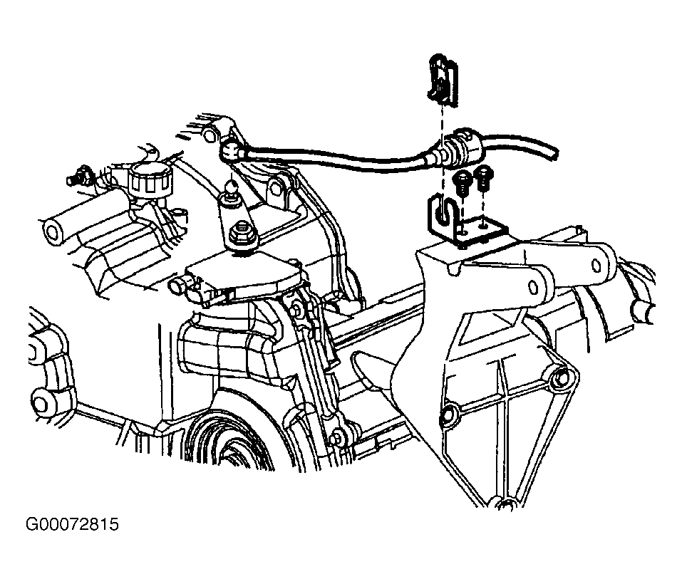 - Route control cable through cable bracket on powertrain mount, and secure cable into bracket. Install control cable retaining clip. See Figure. Connect control cable end to control assembly lever.
