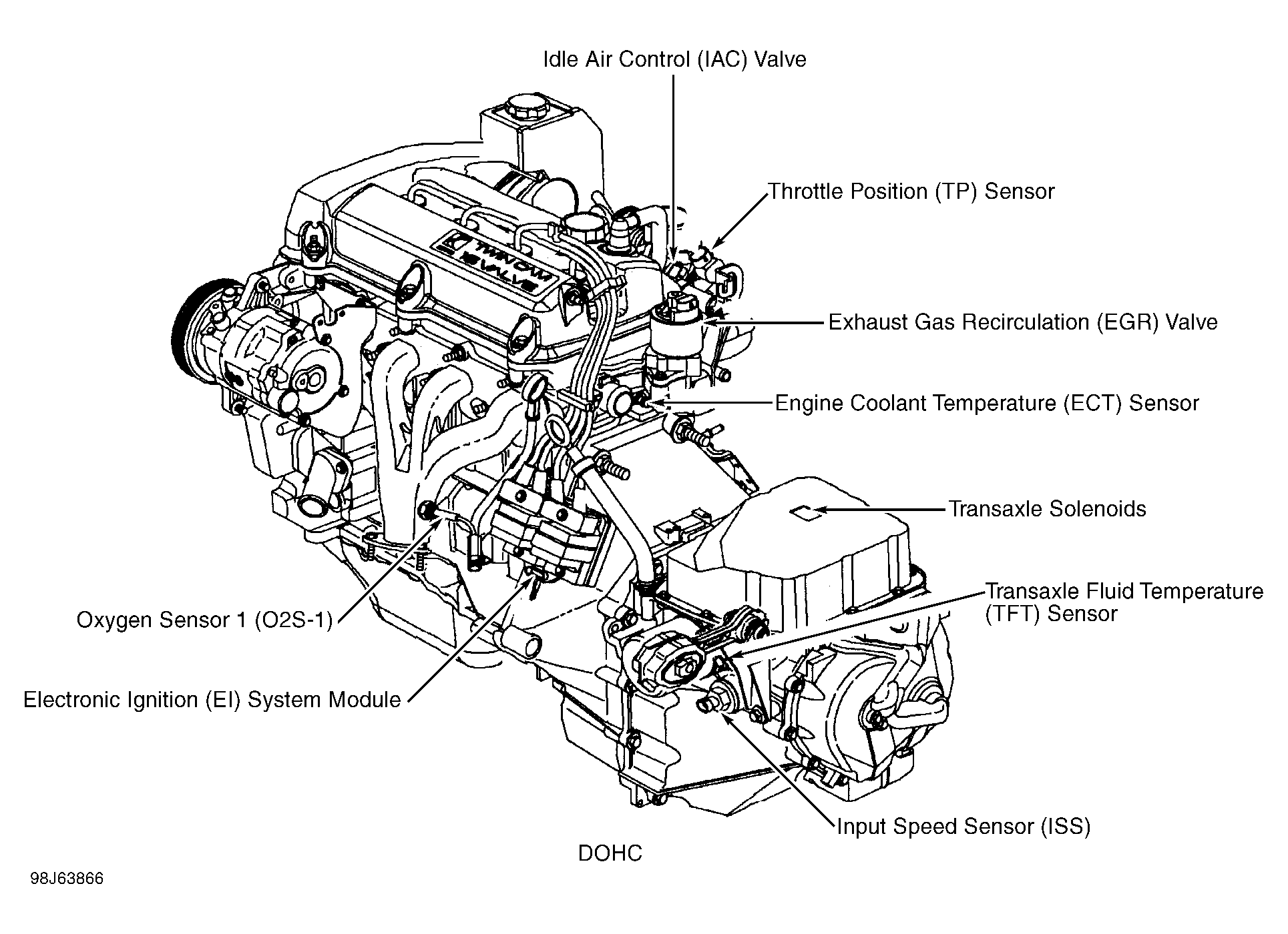 Electronic Ignition (EI) System Module (DOHC) On left front side of transaxle housing. See Figure.