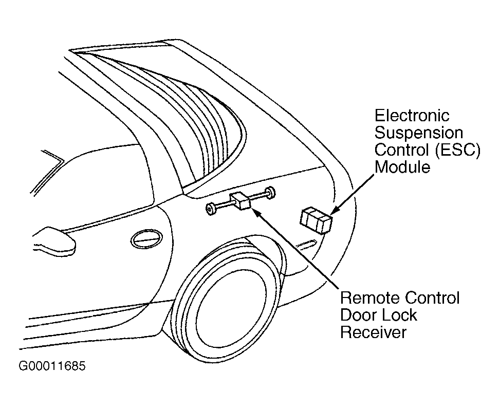 RFA system consists of a transmitter located in drivers key fob, a remote control door lock receiver located in left rear quarter panel, and an integral antenna. See Fig 1 . The RFA system does not directly control system functions. RFA system uses one of the following systems to perform driver commands:
