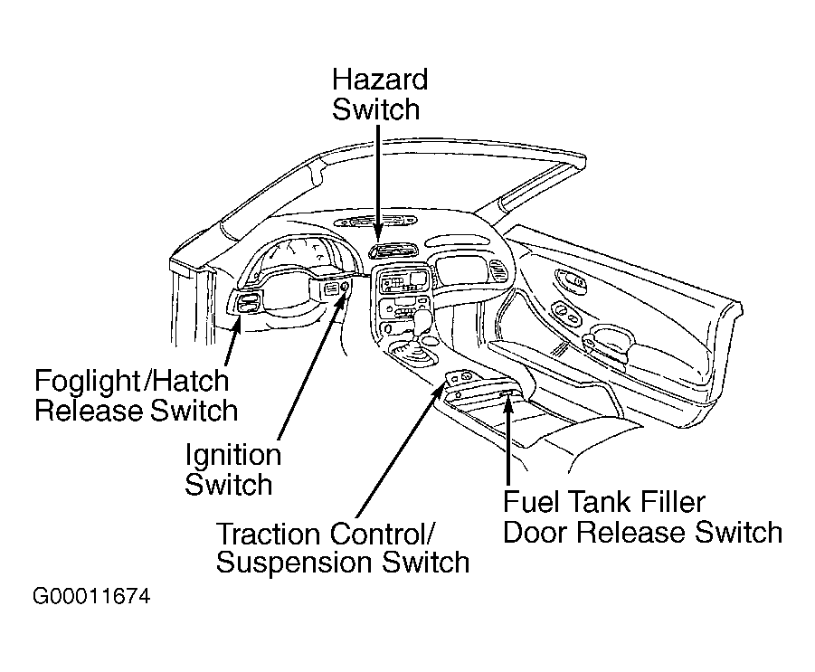 Foglight/Hatch Release Switch (2) In Instrument Panel, Left Of Steering Column