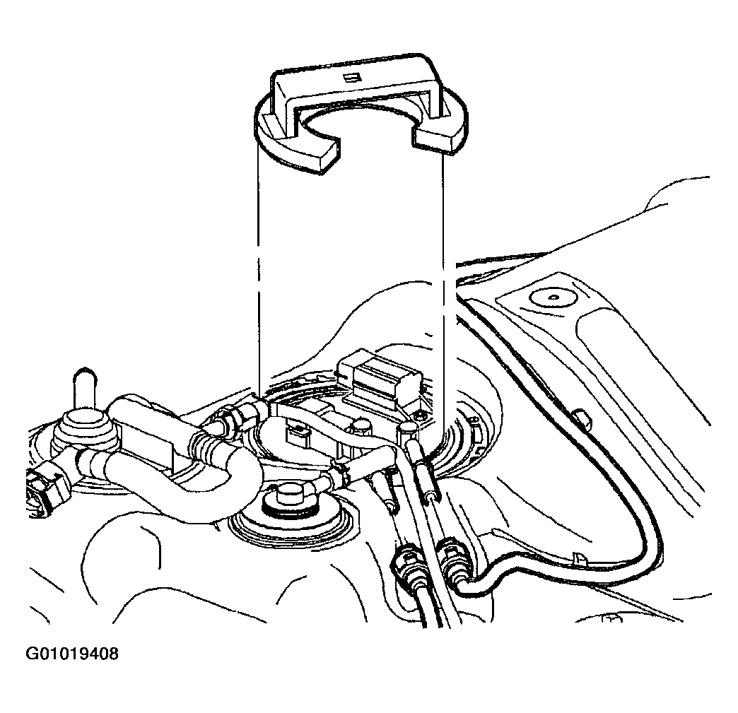 3. Use fuel tank lock ring remover to install fuel pump lock ring. See Figure .