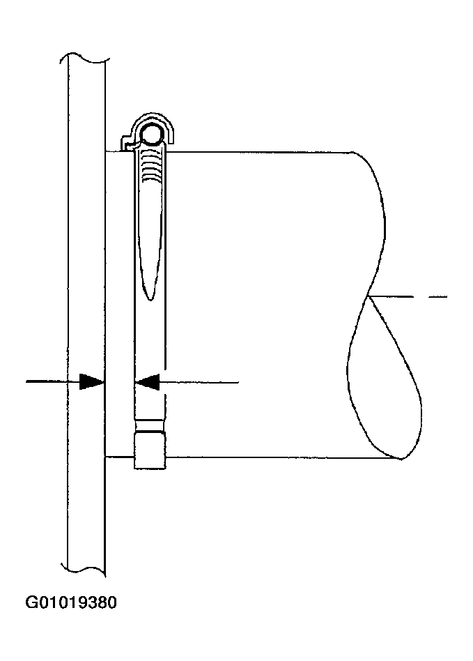 - Tighten hose clamp on filler pipe to fuel tank connecting hose. Tighten fuel fill neck-to-fuel tank clamp to 5 N.m (44 in-lbs). See Figure