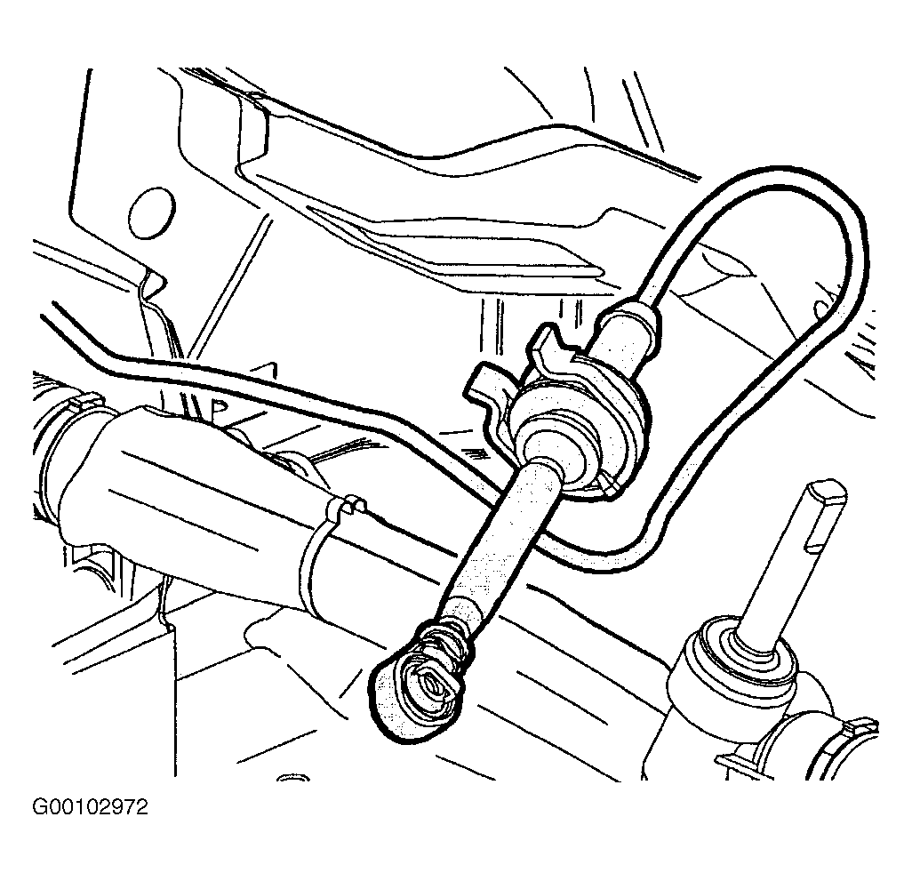 - Position vehicle on hoist and raise vehicle. Route cable along steering gear assembly into clip and up into dash panel. See Fig 2 .
