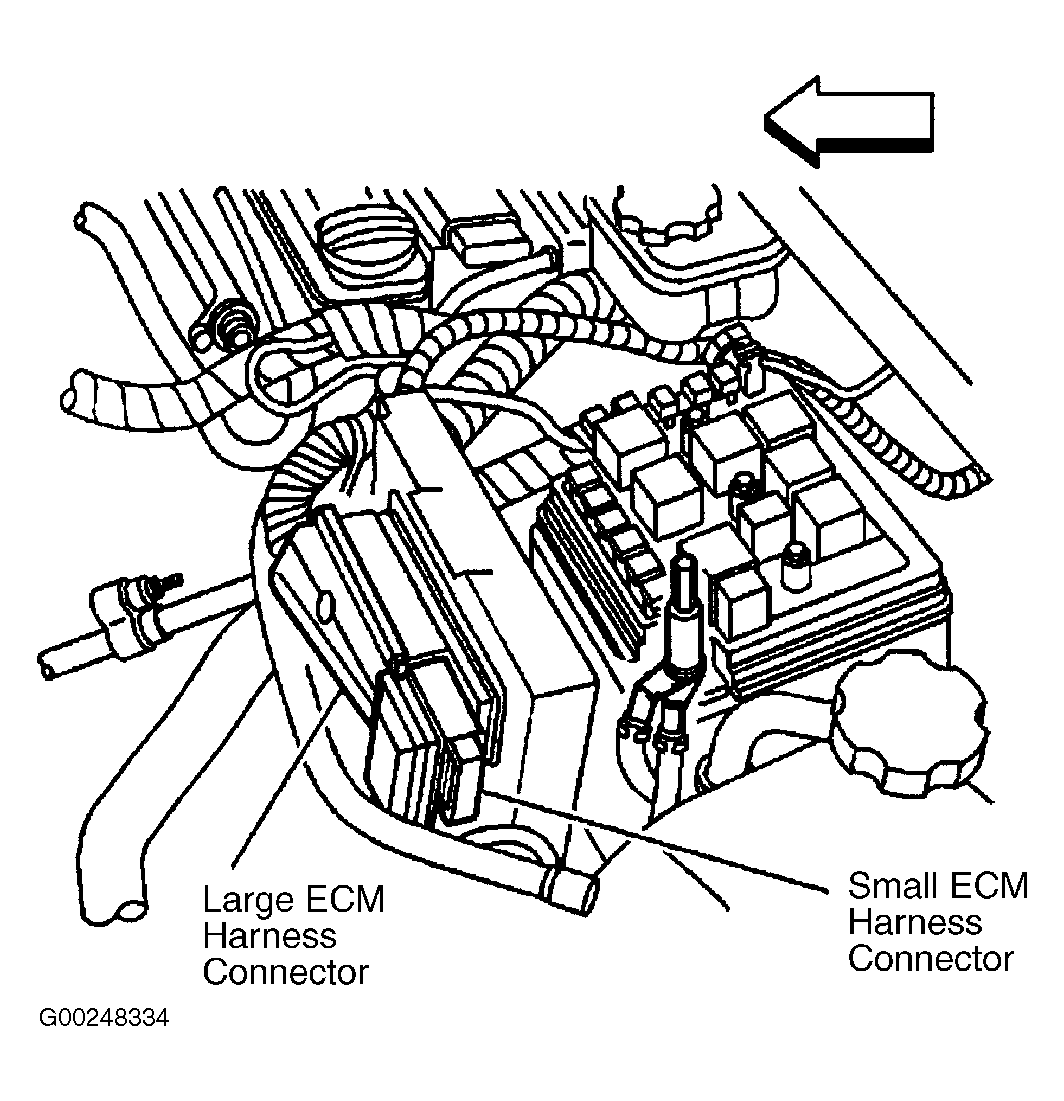 - Disconnect the small ECM harness connector from the ECM. See Figure .