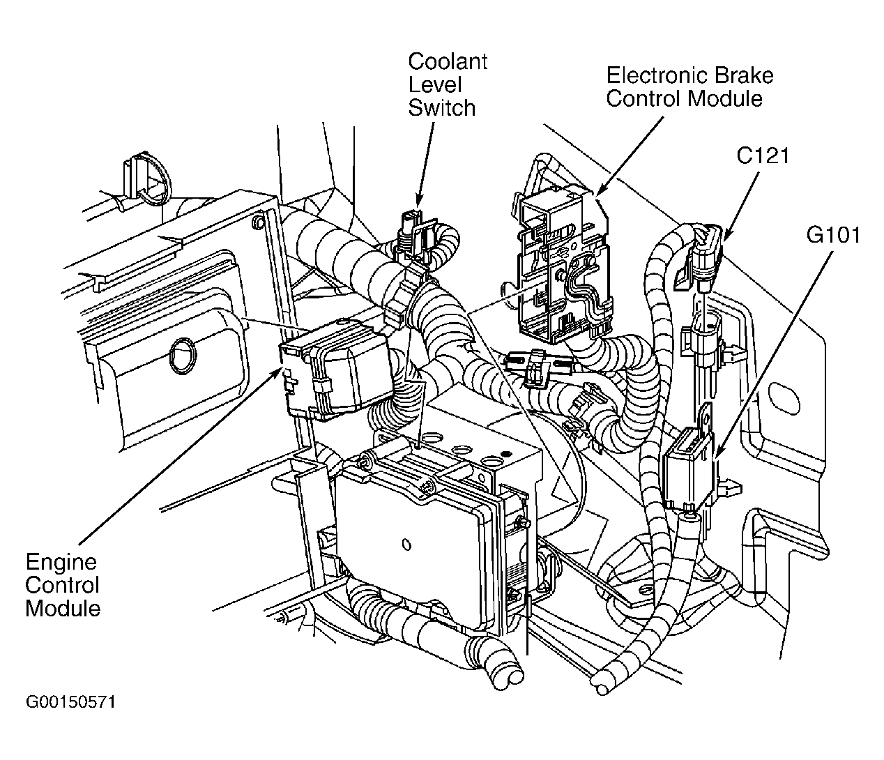 | Electronic Brake Control Module | At left side of engine compartment. See Figure. |