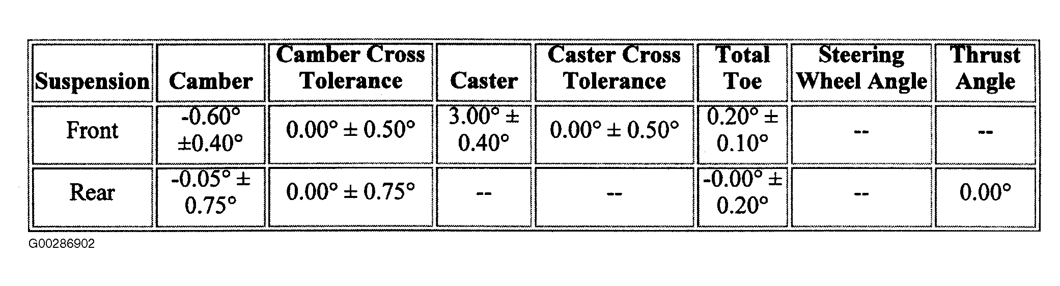Fig 1: Wheel Alignment Specifications