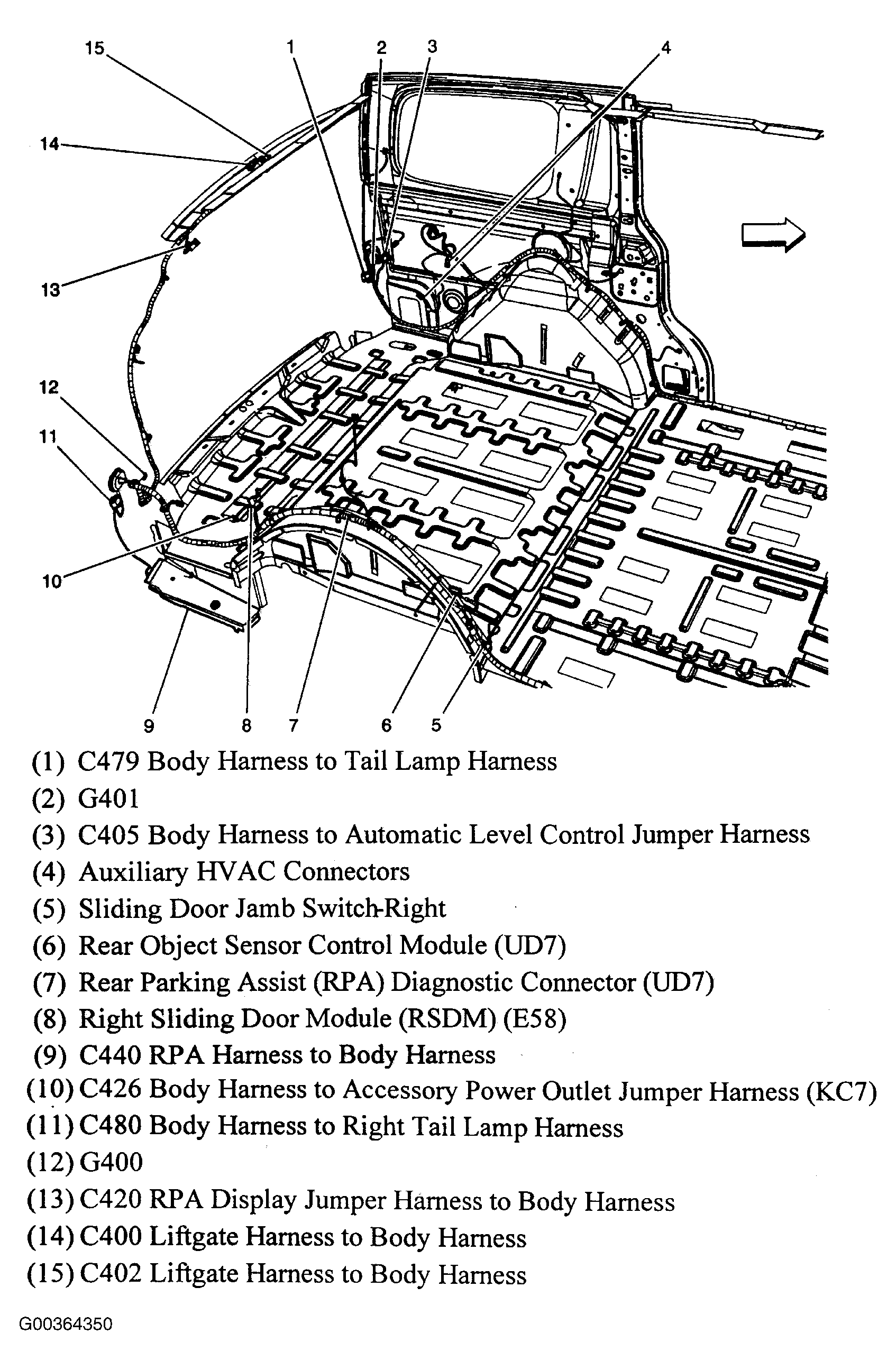 C480 (Black, 6 Pin) Outside vehicle behind right tail lamp housing. See Figure .
