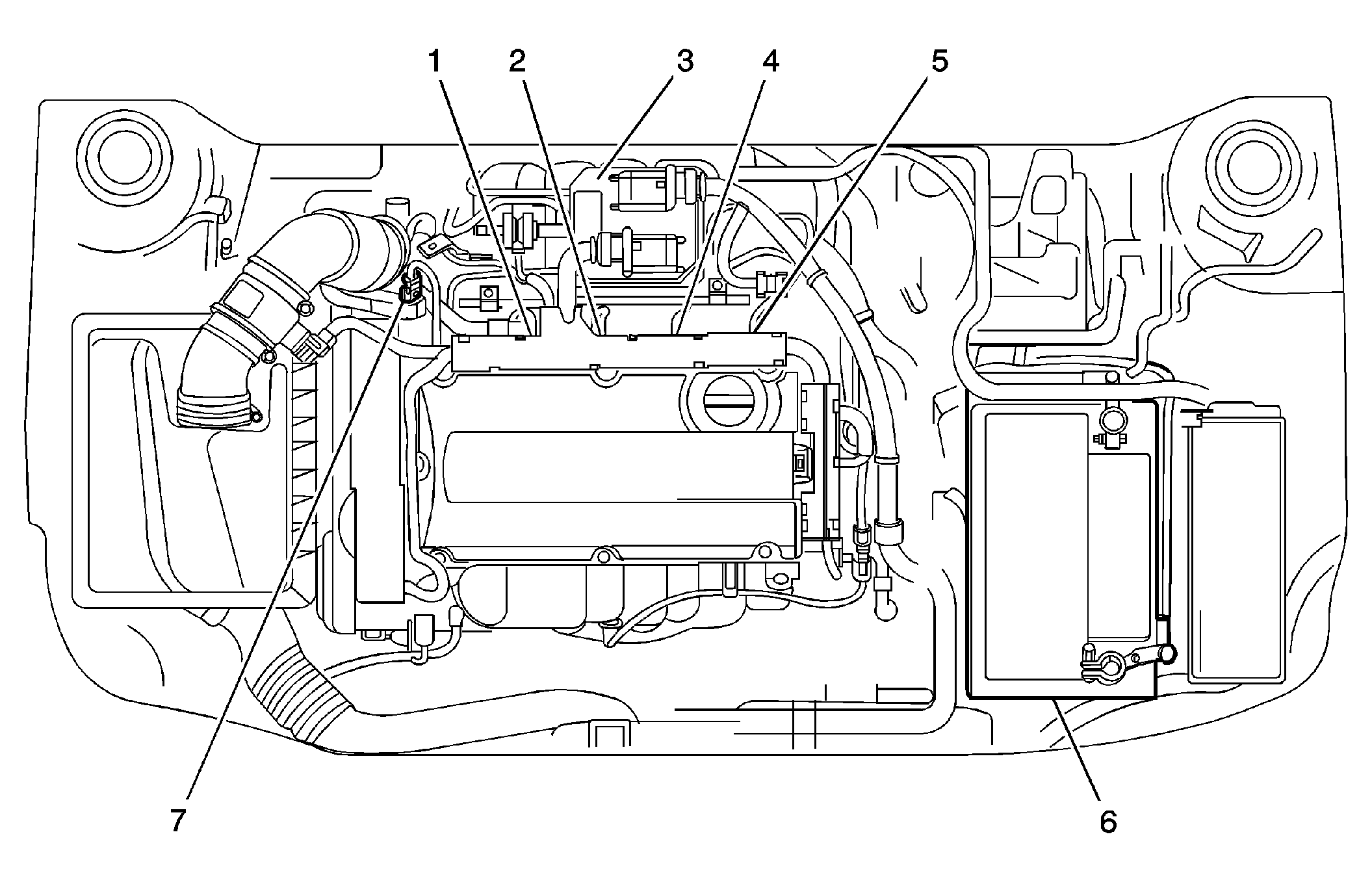 | Engine Control Module (ECM) (3) | Center rear of engine compartment. See Figure. |