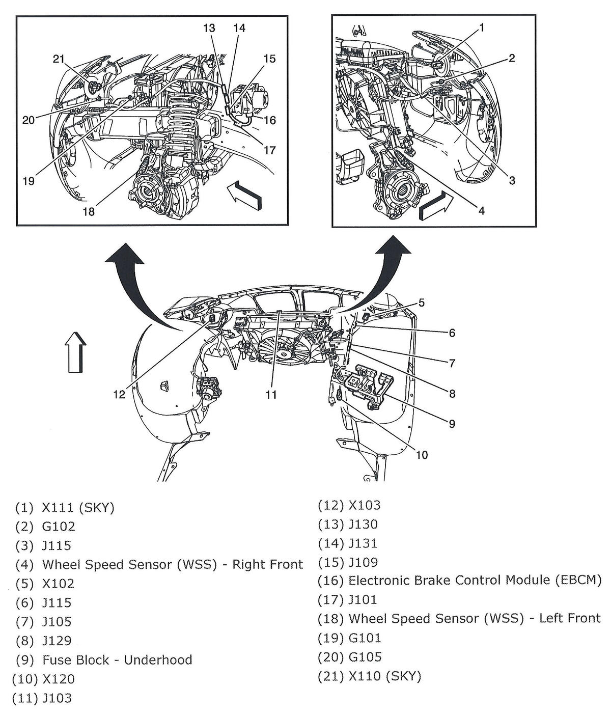 | Fuse Block - Underhood | Right rear corner of engine compartment. See Figure. |